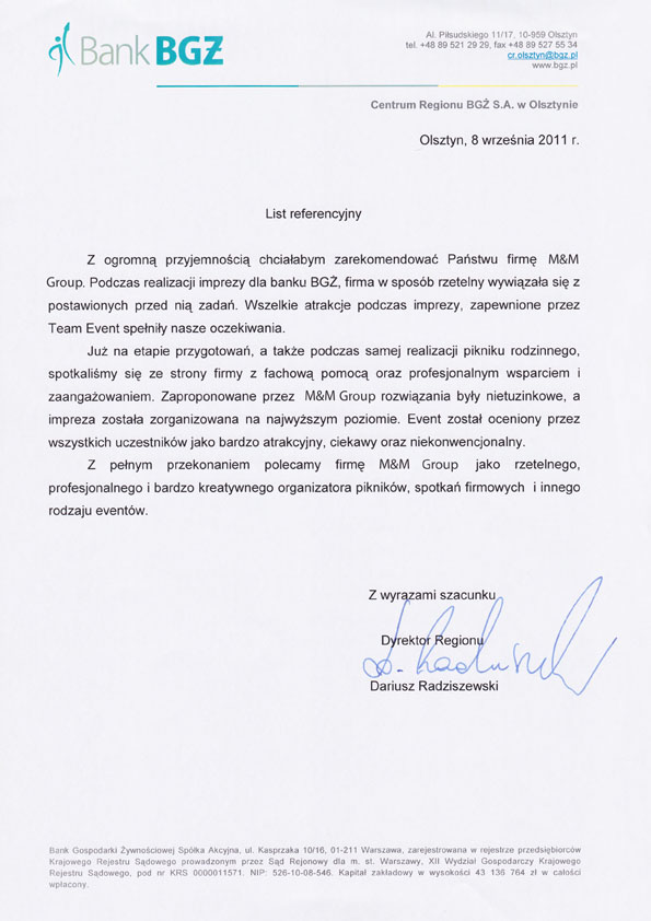 Bank BGZ - Referencje