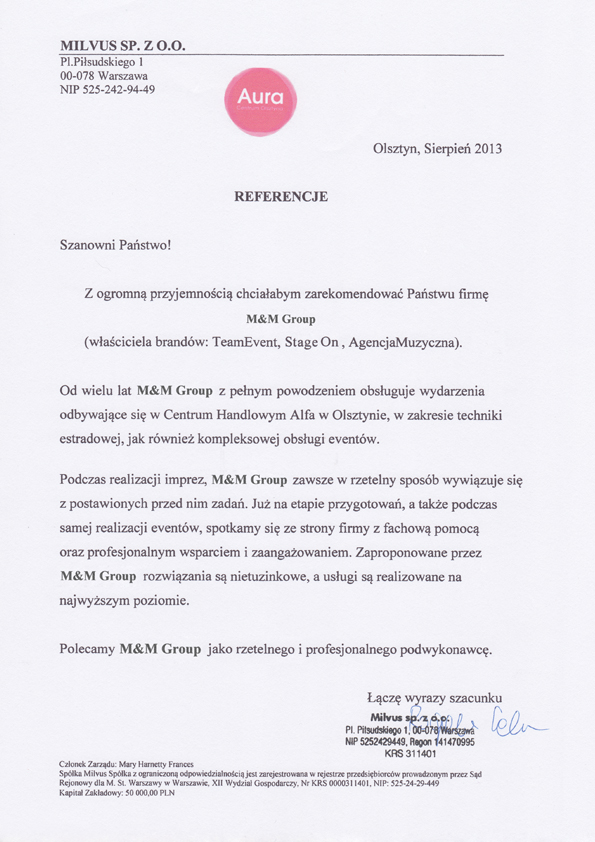 Centrum Aura – Referencje